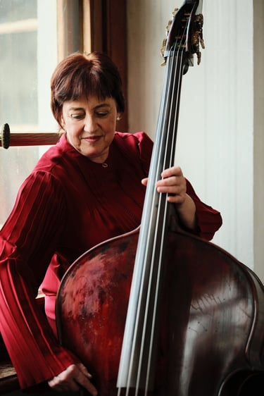 Regina bildet mit ihrem Spiel auf dem Kontrabass das musikalische Gerüst für Salteris, auf welchem die anderen Instrumente förmlich zum Leben erwachen.